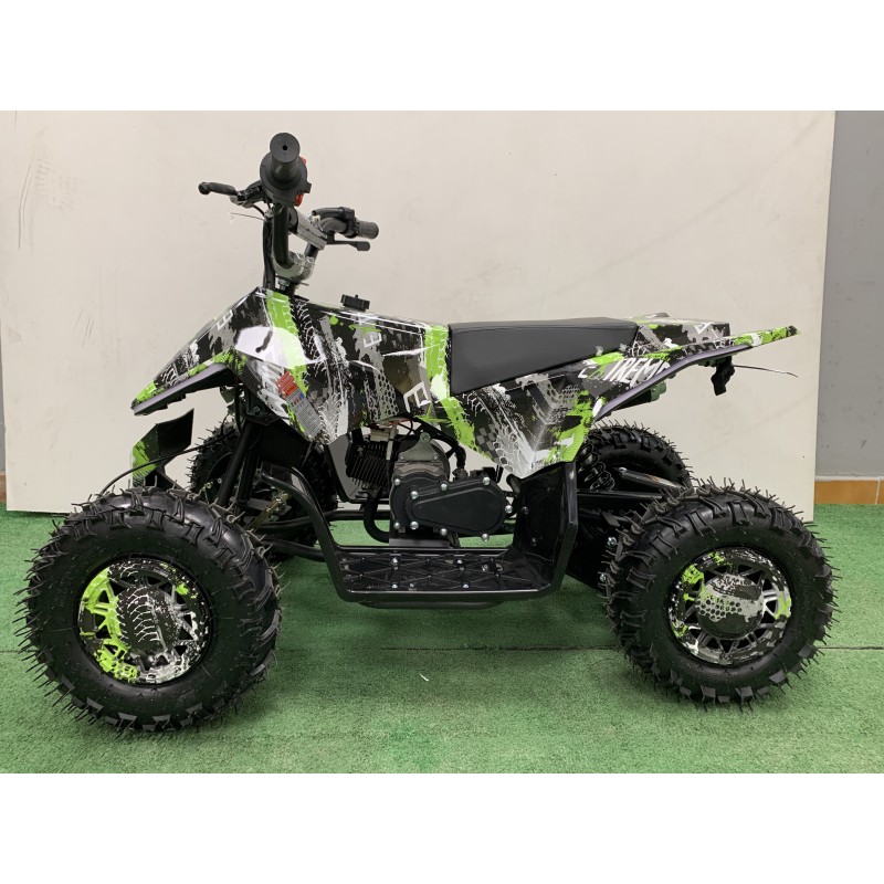 QUAD 50 cc enfant, moteur 2 temps type Mitsubishi. Démarrage électrique. Roue en 6 pouces. Grand gabarit. Le quad LUNAIRE 6 possède 4 sécurité.