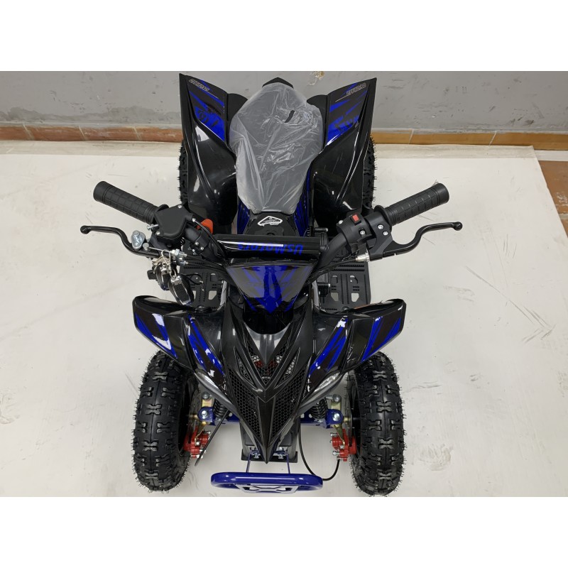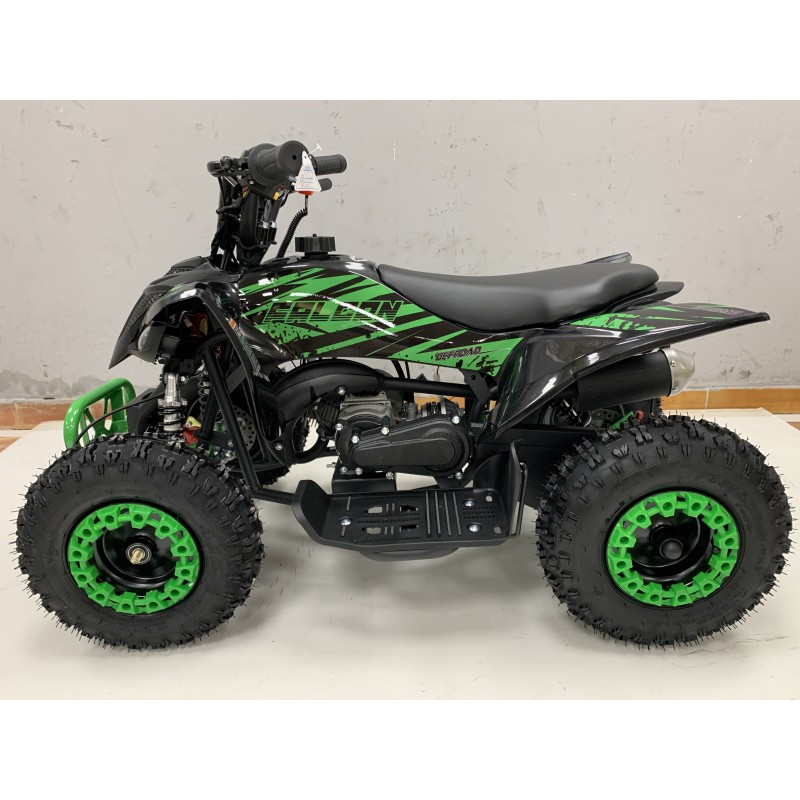 QUAD 50 cc enfant, moteur 2 temps type Mitsubishi. Démarrage électrique. Roue en 6 pouces. Grand gabarit. Le quad superkawa 6 possède 4 sécurité.