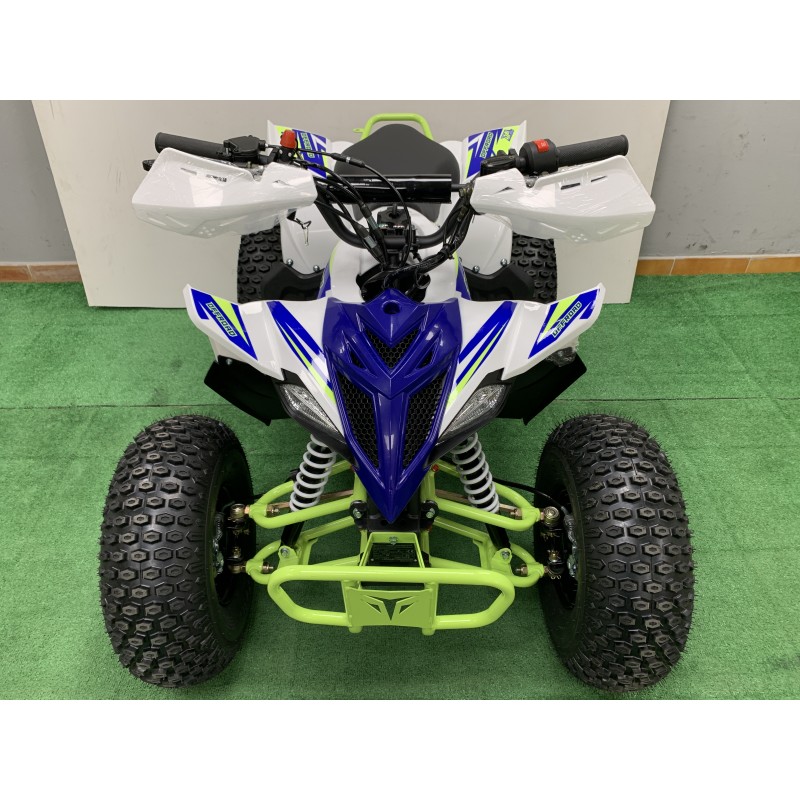 QUAD enfant 125 cc RAPTOR NEW 7 . Le QUAD RAPTOR NEW 7 125 cc enfant de 8 ans à 14 ans est équipé d’un moteur 4 temps type honda dax très robuste, il est conçu comme un adulte en miniature avec ses triangles de direction, frein à disque hydraulique etc…