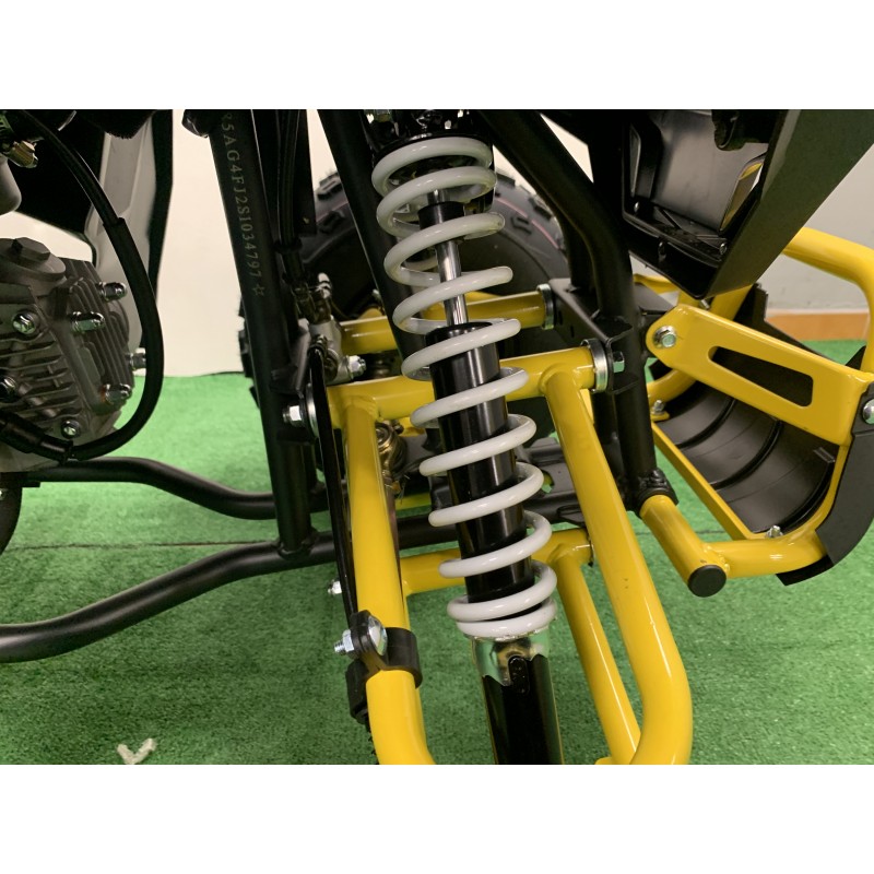 QUAD enfant 125 cc WARRIOR. Le QUAD WARRIOR 125 cc enfant de 8 ans à 16 ans est équipé d’un moteur 4 temps type honda dax très robuste, il est conçu comme un adulte en miniature avec ses triangles de direction, frein à disque hydraulique etc…